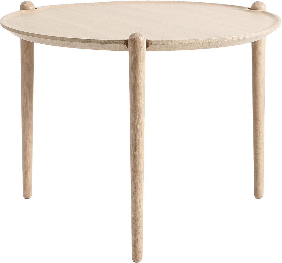 Aria Table vilar tryggt på sina subtilt avsmalnade ben samtidigt som den lilla distansen mellan toppskivan och underredet inger en känsla av att bordet svävar fritt. Tillverkade i massiv ek och sammanhållna av lackerade järnbeslag undertill, finns Aria Table tillgängliga i två olika höjder med olika diameter. Låt det mindre bordet glida in under det stora eller använd borden som starka solitärer. En japansk högkvalitativ bets har gnuggats in i trät, lager för lager, för att behålla ådringen synlig i den vita varianten så väl som i den ofärgade eken.