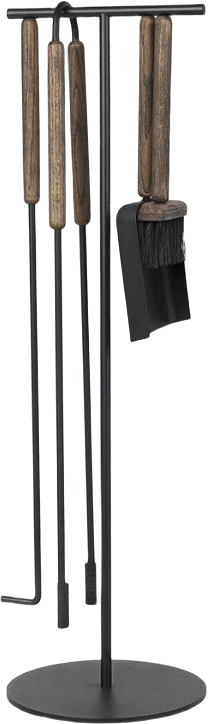 Handtagen i ek har en magnet som håller verktygen på plats i stället av pulverlackerat stål. Kollektionen ASHI innehåller flera varianter för alla slags kaminer och för att ge dig en mysig och varm atmosfär.
