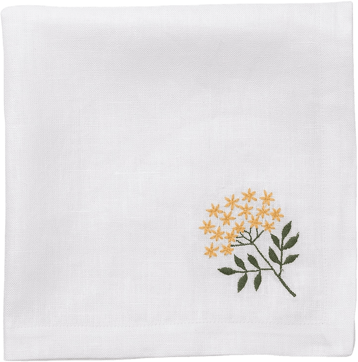 Oavsett om du håller i en formell middagsbjudning eller njuter av en avslappnad måltid med familjen tillför vår flirtiga men sofistikerade Bouquet-servett en touch av lekfull elegans till varje tillfälle. Denna servett är handgjord av 100 % linne och broderad för hand med vackra blommor.