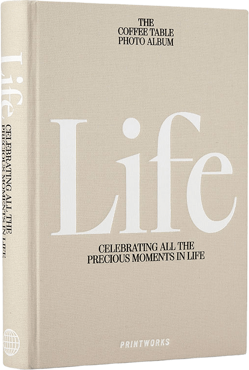 Den här Coffee Table Fotoboken i neutrala färger påminner mer om en inbunden inredningsbok än ett traditionellt fotoalbum. När den är stängd ser den precis ut som en elegant coffee table-bok, men när den öppnas är den fylld med 80 benvita sidor av högkvalitativt fotopapper.