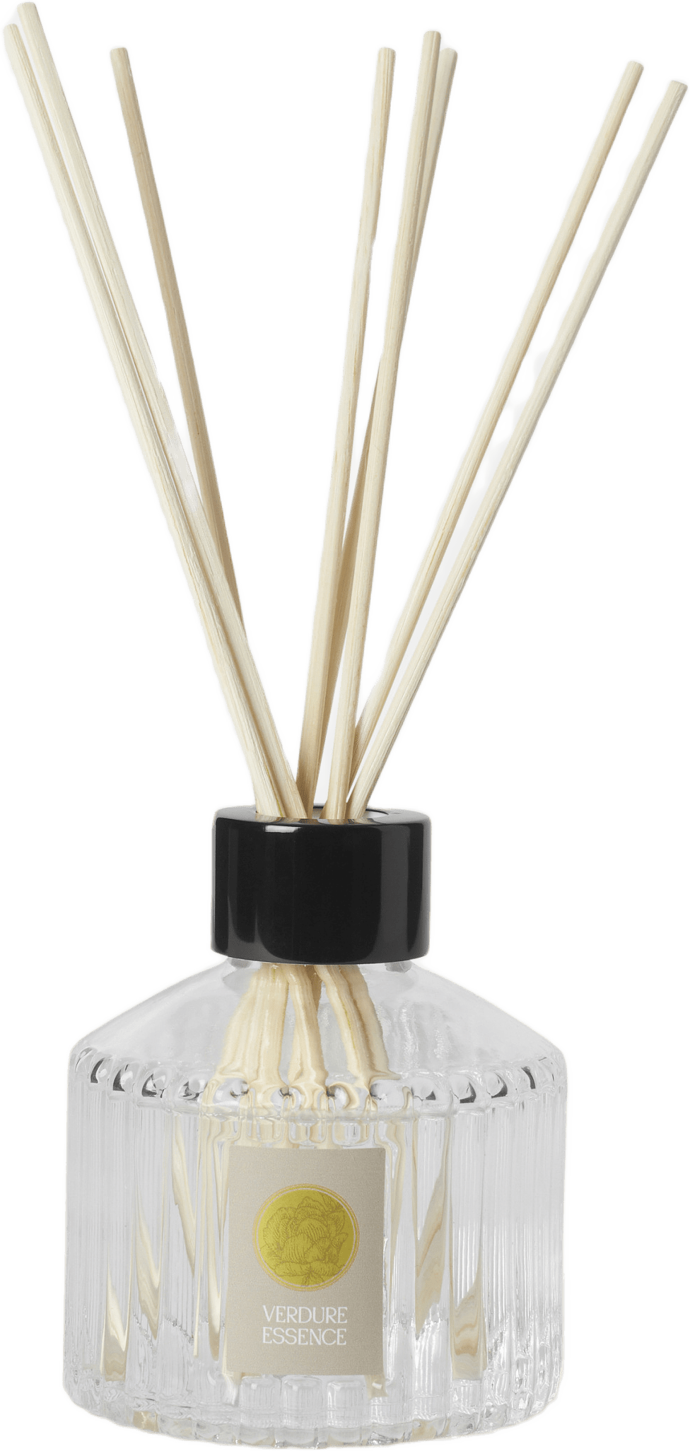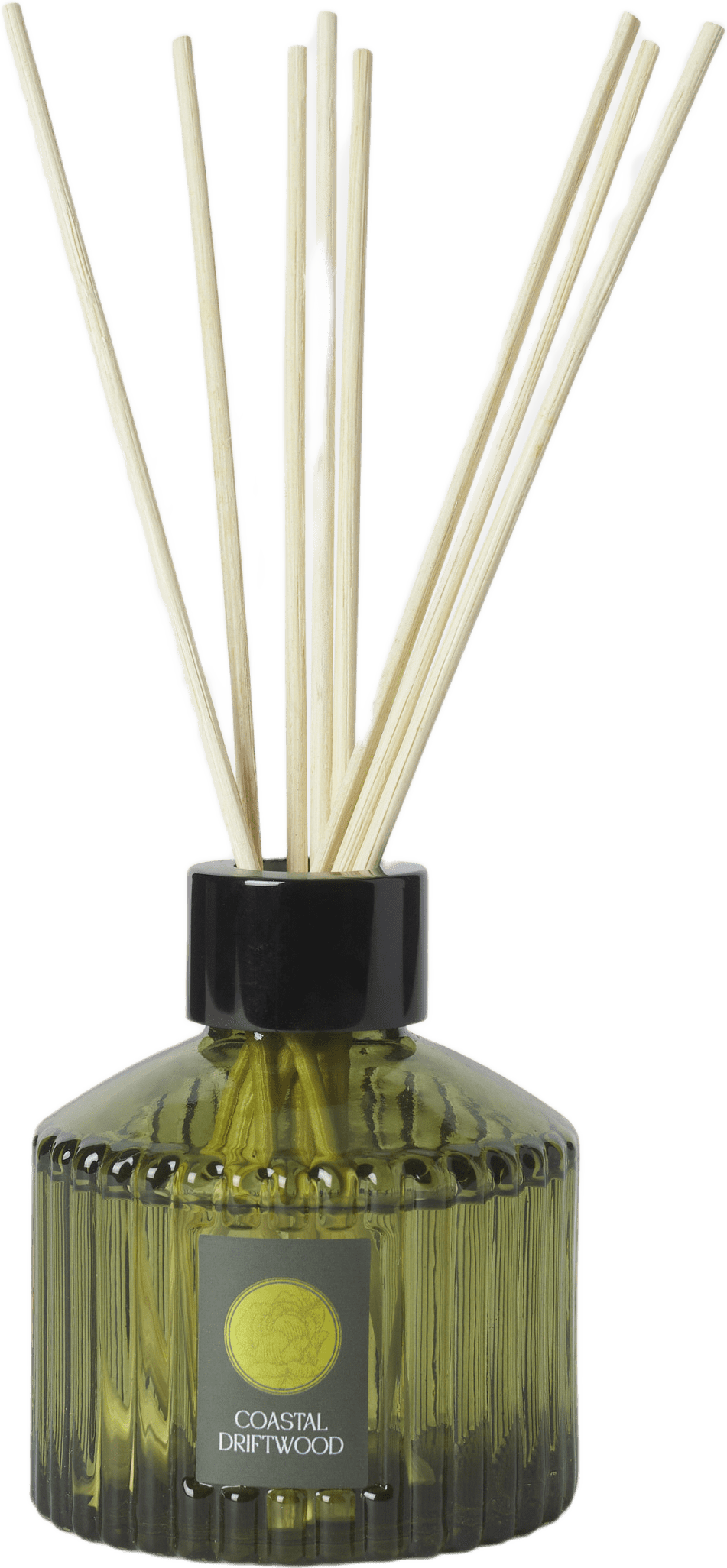 Elegant doftspridare i rillat glas, med doftolja och träpinnar som garanterat höjer mysfaktorn hemma.