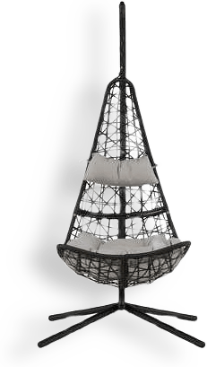 En riktig trendsättare ute på altanen eller i trädgården, eller varför inte vid poolkanten? Stolen har en sits i grå konstrotting och en ram i svart stål och matchande mjuka dynor som ingår. Plocka fram favoritboken och njut av sommarens lata dagar i hängstolen Edinburgh! Stolen finns i flera färger.Mått: 130x205x132