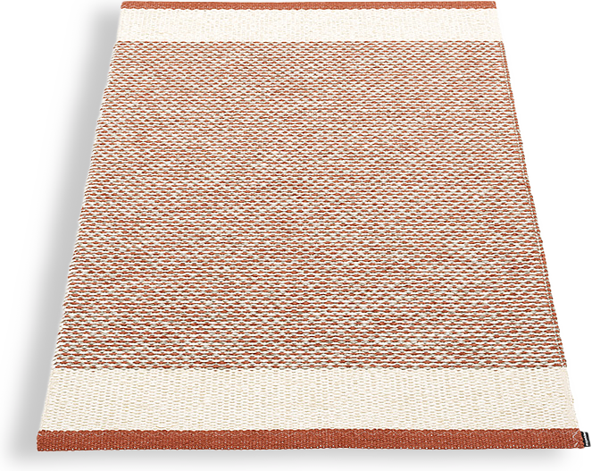 Plastmatta för inom- och utomhusbruk, tillverkad i Dalarna. Fållade kanter med insydd logotype på ena sidan. Mattan vävs av svensktillverkade ftalatfria plastband från Gislaved Folie AB i traditionella vävstolar. Enkel att underhålla och rengöra, handtvätt eller maskintvätt 30°C utan centrifugering. Storleksavvikelser på ±4% kan förekomma på grund av vävtekniska skäl. Tjocklek ca 10 mm.