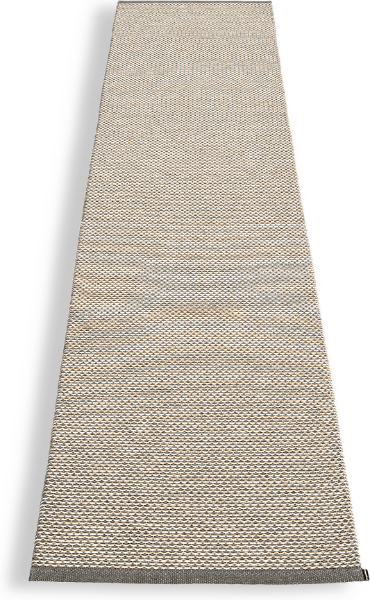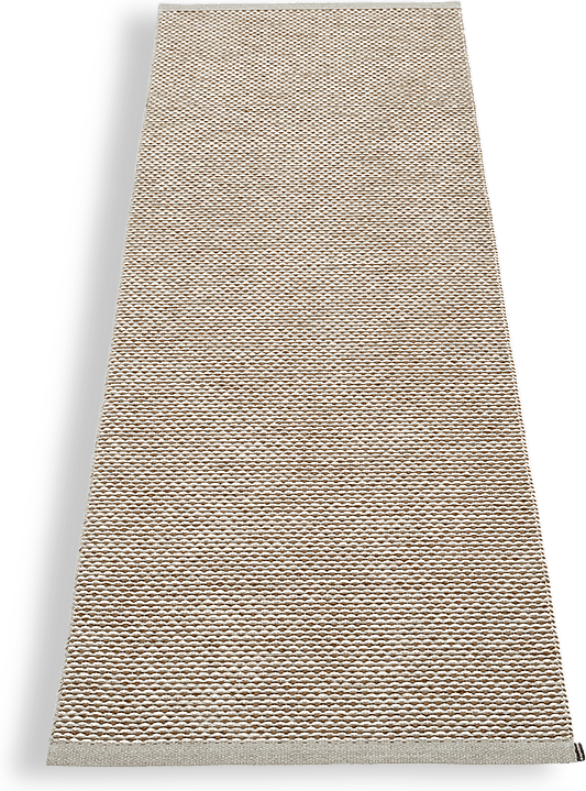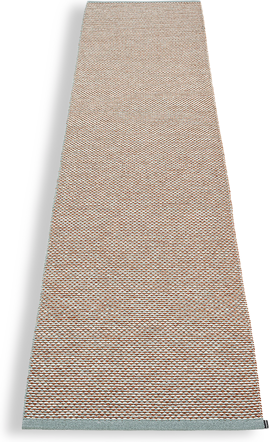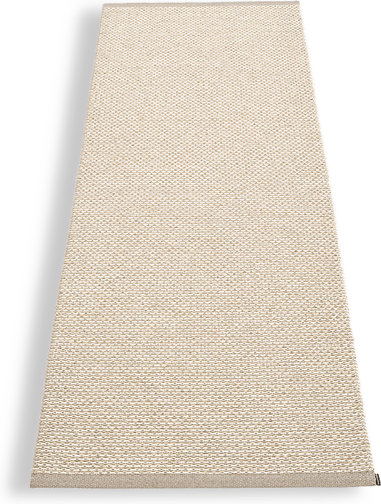 Plastmatta för inom- och utomhusbruk, tillverkad i Dalarna. Fållade kanter med insydd logotype på ena sidan. Mattan vävs av svensktillverkade ftalatfria plastband från Gislaved Folie AB i traditionella vävstolar. Enkel att underhålla och rengöra, handtvätt eller maskintvätt 30°C utan centrifugering. Storleksavvikelser på ±4% kan förekomma på grund av vävtekniska skäl. Tjocklek ca 10 mm.