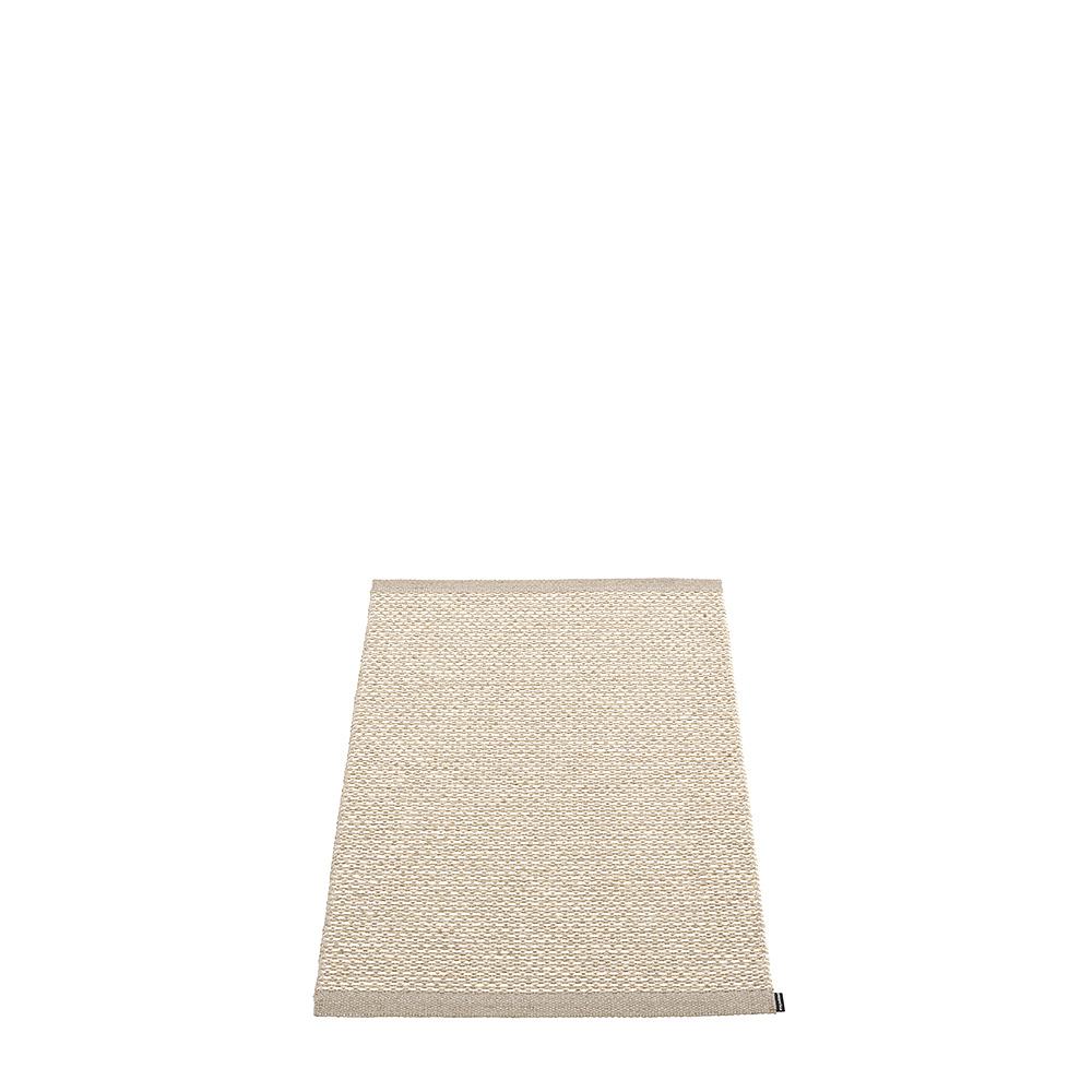 Plastmatta för inom- och utomhusbruk, tillverkad i Dalarna. Fållade kanter med insydd logotype på ena sidan. Mattan vävs av svensktillverkade ftalatfria plastband från Gislaved Folie AB i traditionella vävstolar. Enkel att underhålla och rengöra, handtvätt eller maskintvätt 30°C utan centrifugering. Storleksavvikelser på ±4% kan förekomma på grund av vävtekniska skäl. Tjocklek ca 10 mm.