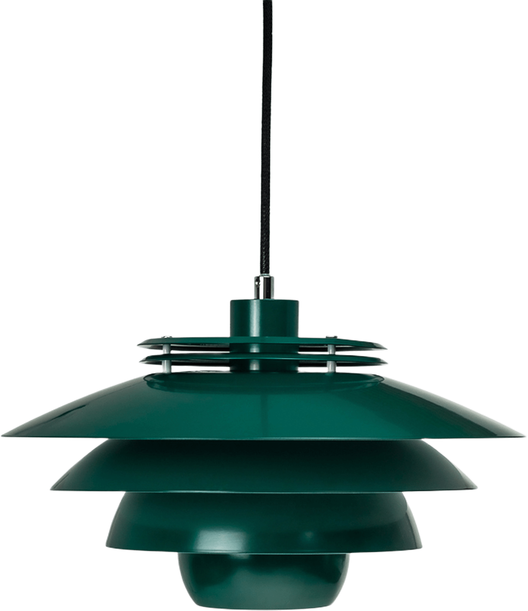 Lampan har fyra skärmar och finns i olika färger. Den använder E27-lampa med max 60 W och har en diameter på 38 cm och en höjd på 20 cm. Den levereras med en 3 meter lång svart tygsladd och har IP20, vilket gör den flexibel att placera i olika rum.