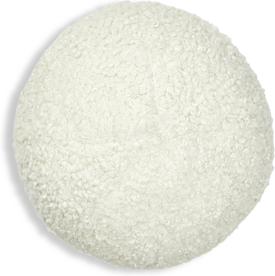Bollformad kudde med mjukt flossat tyg. 25cm i diameter. Formen gör den lättplacerad och fyllningen ger bra stöd. Produkten är certifierad enligt STANDARD 100 by OEKO-TEX®. Certifieringen garanterar att produkten är testad och fri från ämnen som kan vara skadliga för hälsan och miljön.
