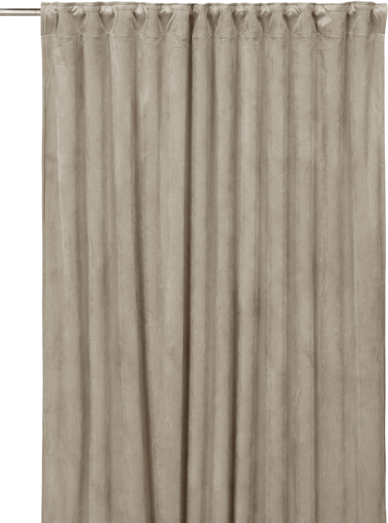 Klä dina fönster i lyxigaste sammeten och få ett vackert blickfång och en härligt hotellkänsla. Väven är slät och sammeten skimrar precis lagom. Eftersom väven är så tät ger den viss mörkläggande effekt. Gardinerna i denna 2-pack har multiband i ovankant, fållade långsidor och overlocksöm i nederkant. Multibandet är en flexibel lösning som gör att gardinen kan hängas upp antingen med fingerkrokar, räkor eller direkt på en stång beroende på vilken typ av veck och vilket fall du vill ha på gardinen. Använd snabbfållningsband för att få önskad längd på gardinen utan att behöva ta fram symaskinen. Måttet på varje gardin är 135x280cm men tänk på att de kan krympa upp till 2% vid tvätt.