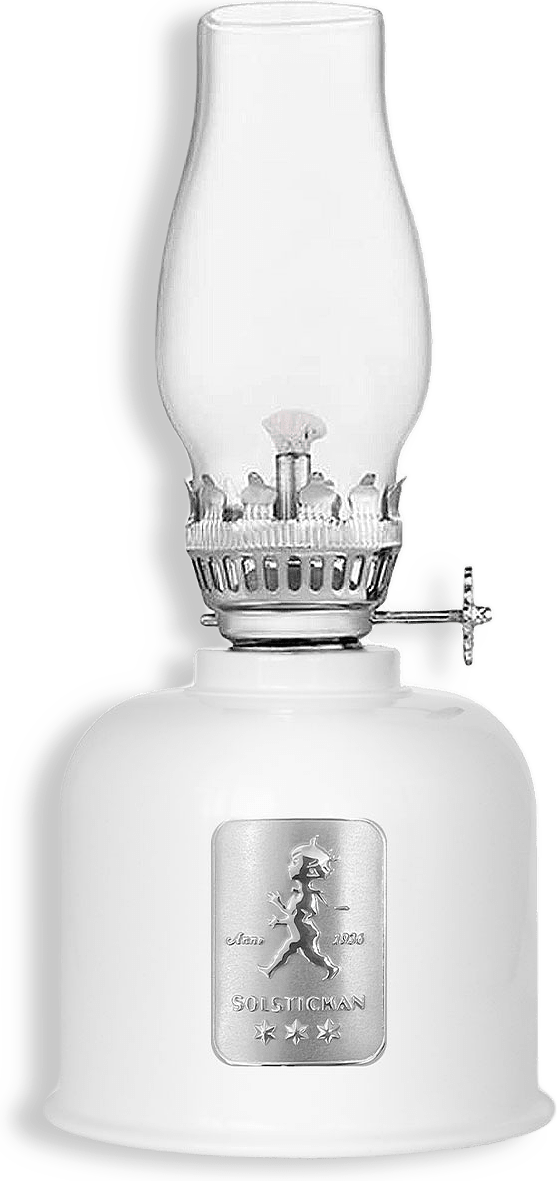 Vacker fotogenlampa med avbildning av den klassiska Solsticke Pojken.