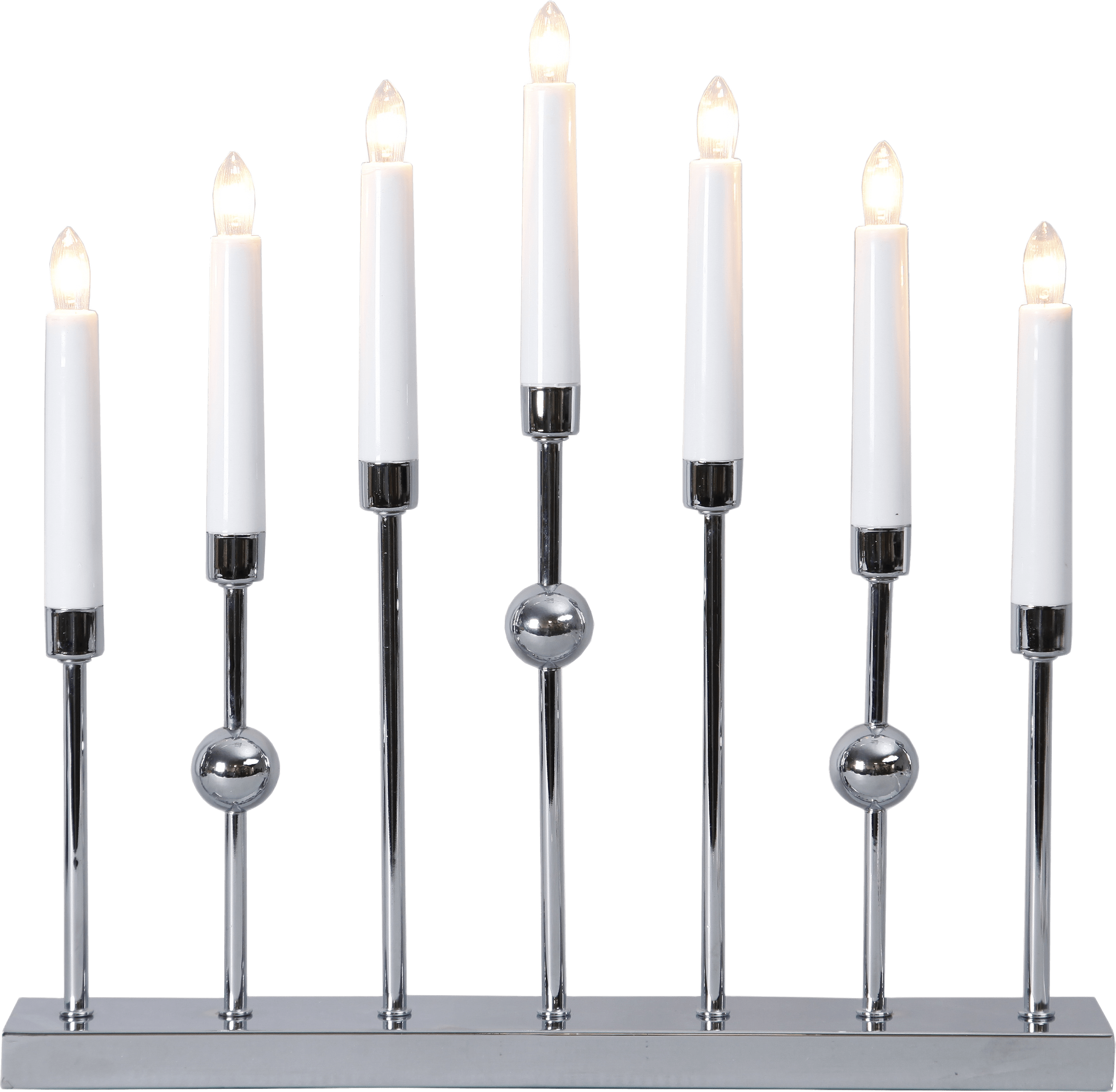 Ytterlager: Candle Body:Plastic,ABS,White (100/115mm);Lamp Holder:Plastic,Nylon, ();Body:Metal,Steel,Chrome ();