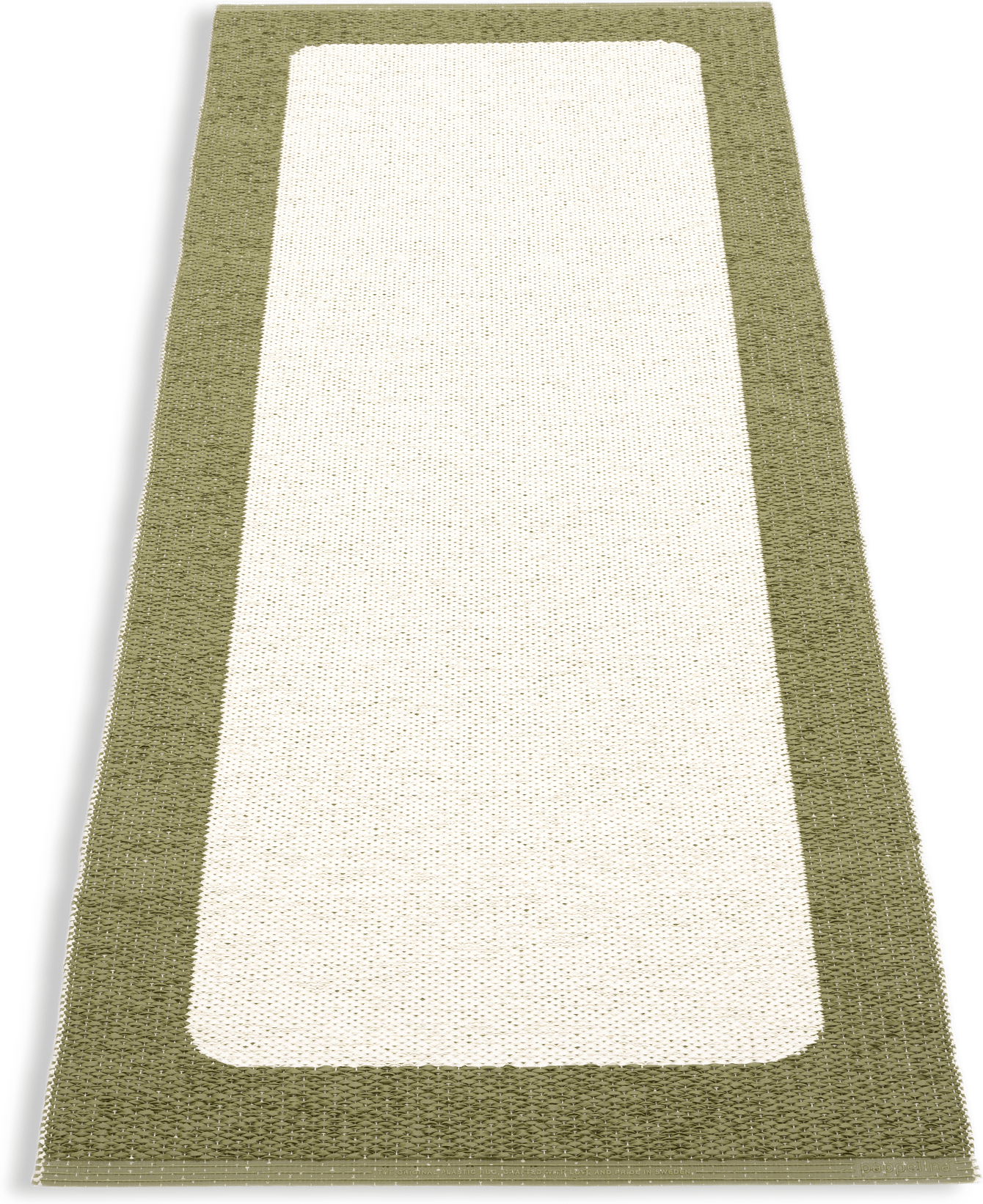 Plastmatta för inom- och utomhusbruk, tillverkad i Dalarna. Svetsade kanter med förstärkningsband för hög slitstyrka, med graverad logotype i båda ändar. Mattan vävs av svensktillverkade ftalatfria plastband från Gislaved Folie AB i traditionella vävstolar. Enkel att underhålla och rengöra, handtvätt eller maskintvätt 30°C utan centrifugering. Storleksavvikelser på ±4% kan förekomma på grund av vävtekniska skäl. Tjocklek ca 5 mm.