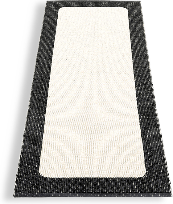Plastmatta för inom- och utomhusbruk, tillverkad i Dalarna. Svetsade kanter med förstärkningsband för hög slitstyrka, med graverad logotype i båda ändar. Mattan vävs av svensktillverkade ftalatfria plastband från Gislaved Folie AB i traditionella vävstolar. Enkel att underhålla och rengöra, handtvätt eller maskintvätt 30°C utan centrifugering. Storleksavvikelser på ±4% kan förekomma på grund av vävtekniska skäl. Tjocklek ca 5 mm.