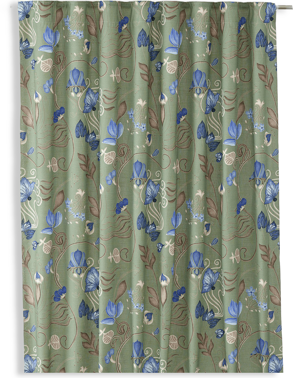 Klassiskt tryckt mönster från Svanefors. 1-pack multibanlängd med multiband i ovankant, fållade långsidor och overlocksöm i nederkant. Multibandet är en flexibel lösning som gör att gardinen kan hängas upp antingen med fingerkrokar, räkor eller direkt på en stång beroende på vilken typ av veck och vilket fall du vill ha på gardinen. Använd snabbfållningsband för att få önskad längd på gardinen. Måttet är 135x240cm.