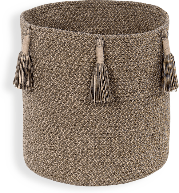 Genom att kombinera två färgtoner för att uppnå naturens ständigt föränderliga färgtoner, är Woody Round Basket tillverkad med blandade bomullssnören i linne och vintage nude. Avslutade med handgjorda tofsar i blandade färger fästa vid brättet. Size: Ø30x30