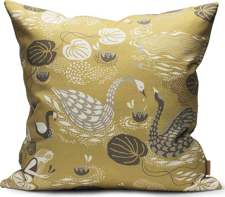 Våra mönster är formgivna av Camilla Lundsten i vår Studio i Stockholm. Vi arbetar endast med hållbara och certifierade naturmaterial, och all vår tillverkning sker med hantverket i fokus tillsammans med våra vävare och tryckare i Sverige och norra Europa. Vår Linne/bomullsväv är utvecklad för att hålla länge och åldras vackert. (Innerkudde ingår ej).