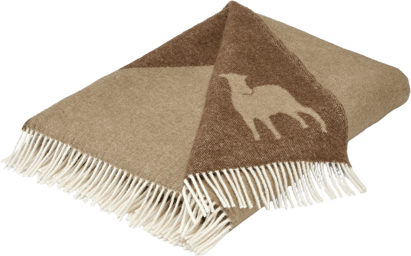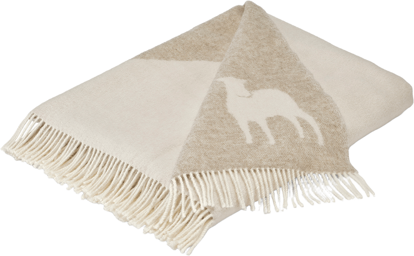 Shepherd Lennie. Jacquardvävd filt i värmande ull. Mönstrets färger är spegelvända på baksidan. Fransar längs kortsidorna. Mått 140x240cm.