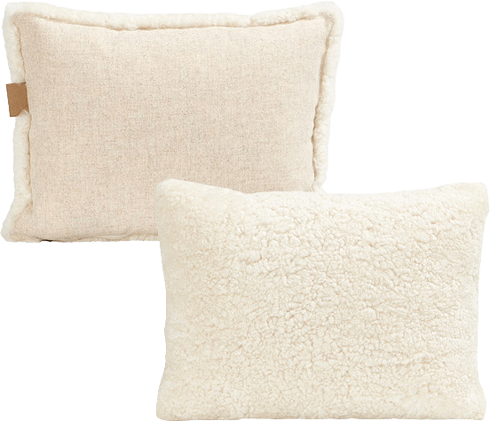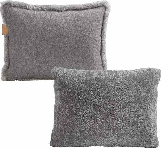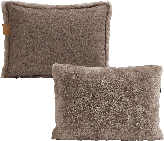 Shepherd Lina. En kudde med framsida i korthårig mjuk fårskinn med sitt ursprung ifrån Australien och baksida i vävd ull. Dold dragkedja. Innerkudde i polyesterblandning med fyllning av 50% siliconskruvar och 50% andfjädrar vilket gör att kudden känns fluffig och håller sin form. Alla fårskinn är naturliga och kan därför variera i sin naturliga struktur. 40x30cm