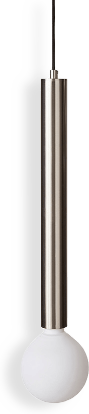 Lampan long ger ett stilrent uttryck med sin 45 cm lång metalltub. Välj mellan blank eller borstad nickel samt borstad mässing. Long kan hängas i grupp eller över en arbetsbänk i köket.