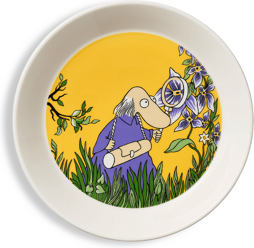 Hemulen är en dedikerad botanist och samlar alla plantor han kan. På väg till Hattifnattarnas ö hittar han ett par otroligt sällsynta växter. Den gula muggen är ett färgglatt tillskott till vår klassiska Mumin-kollektion. Moomin by Arabia, tallrik 19 cm, Hemulen