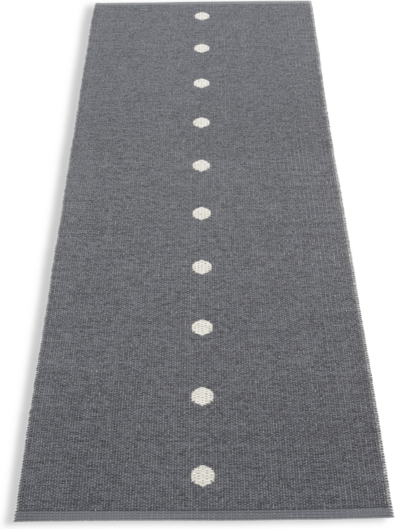 Plastmatta för inom- och utomhusbruk, tillverkad i Dalarna. Svetsade kanter med förstärkningsband för hög slitstyrka, med graverad logotype i båda ändar. Mattan vävs av svensktillverkade ftalatfria plastband från Gislaved Folie AB i traditionella vävstolar. Enkel att underhålla och rengöra, handtvätt eller maskintvätt 30°C utan centrifugering. Storleksavvikelser på ±4% kan förekomma på grund av vävtekniska skäl. Tjocklek ca 5 mm.
