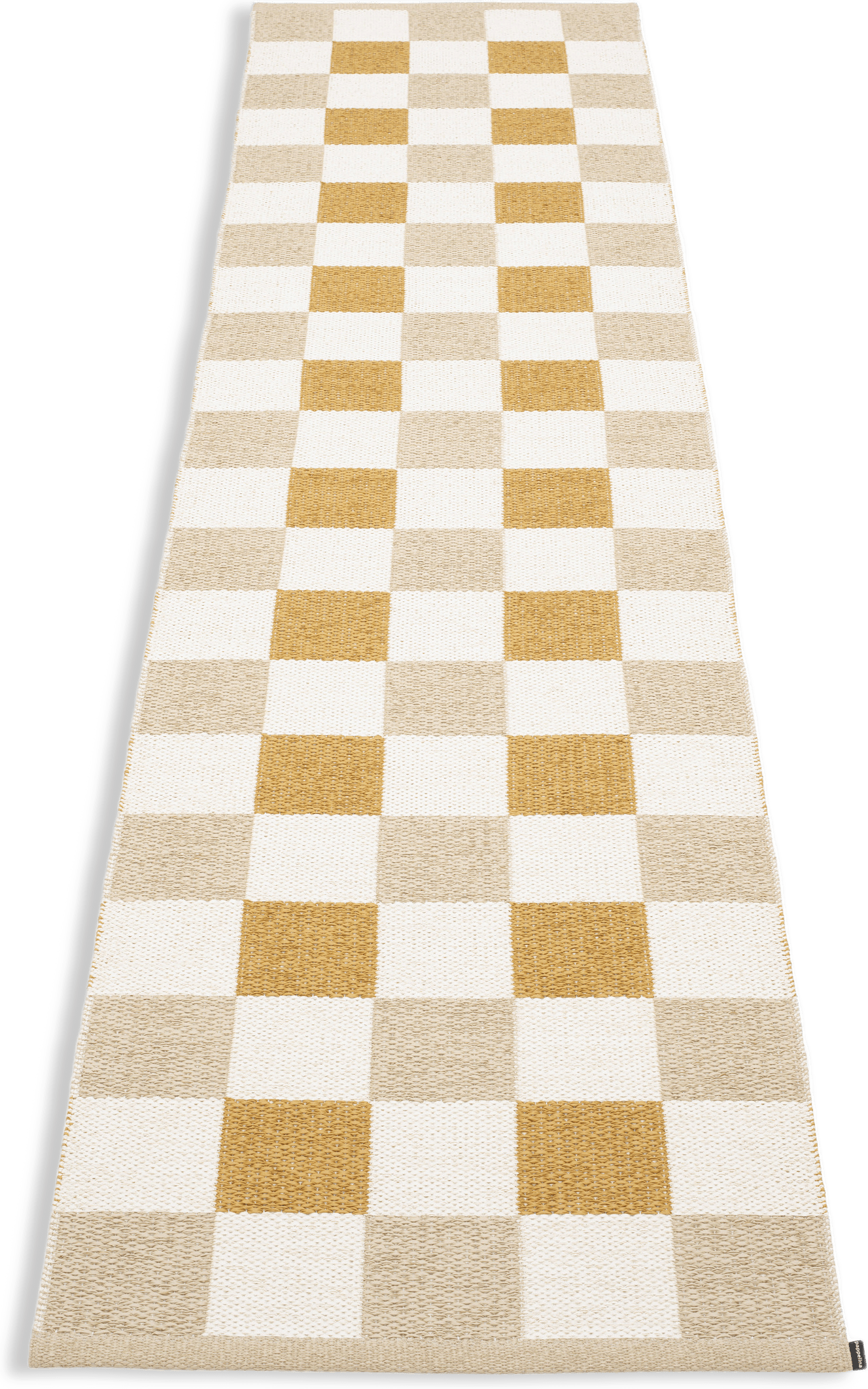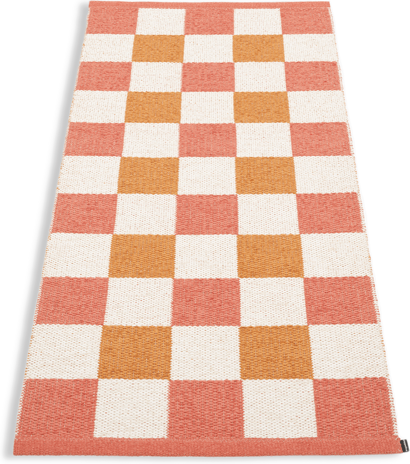Plastmatta för inom- och utomhusbruk, tillverkad i Dalarna. Svetsade kanter med förstärkningsband för hög slitstyrka, med graverad logotype i båda ändar. Mattan vävs av svensktillverkade ftalatfria plastband från Gislaved Folie AB i traditionella vävstolar. Enkel att underhålla och rengöra, handtvätt eller maskintvätt 30°C utan centrifugering. Storleksavvikelser på ±4% kan förekomma på grund av vävtekniska skäl. Tjocklek ca 5 mm.