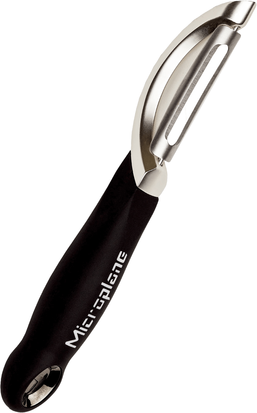 Microplanes Professional skalare med integrerad potatisögonborttagare är inte bara idealisk för enkel skalning, utan även för att skapa tunna strimlor av frukt och grönsaker för sallader och dekorationer.