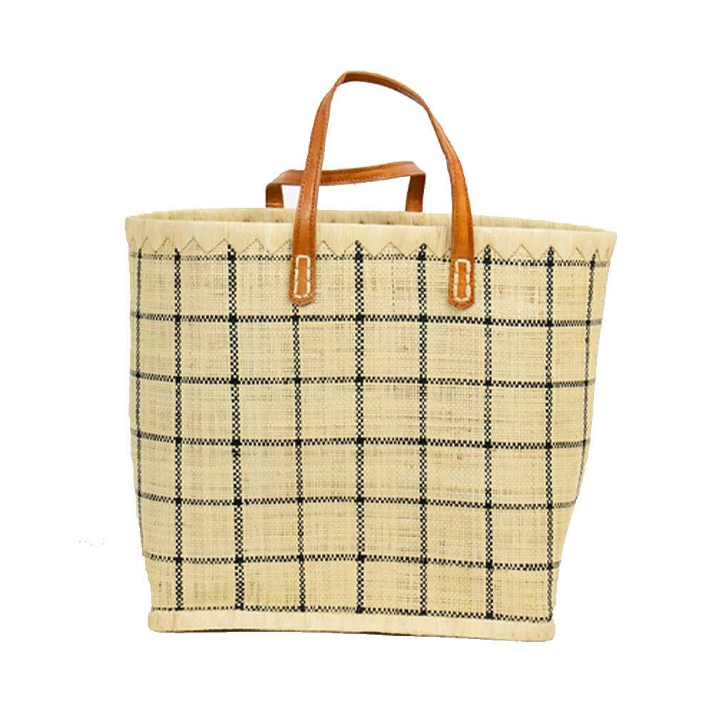 A World of Craft RAFFIA Väska rutig L, natur/svart