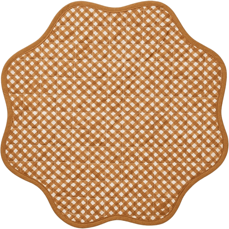 Vår lekfulla men sofistikerade bordstablett Scallop tillför charm till varje måltid. Bordstabletten är handgjord av 100% bomull och broderad med en vågig kant.