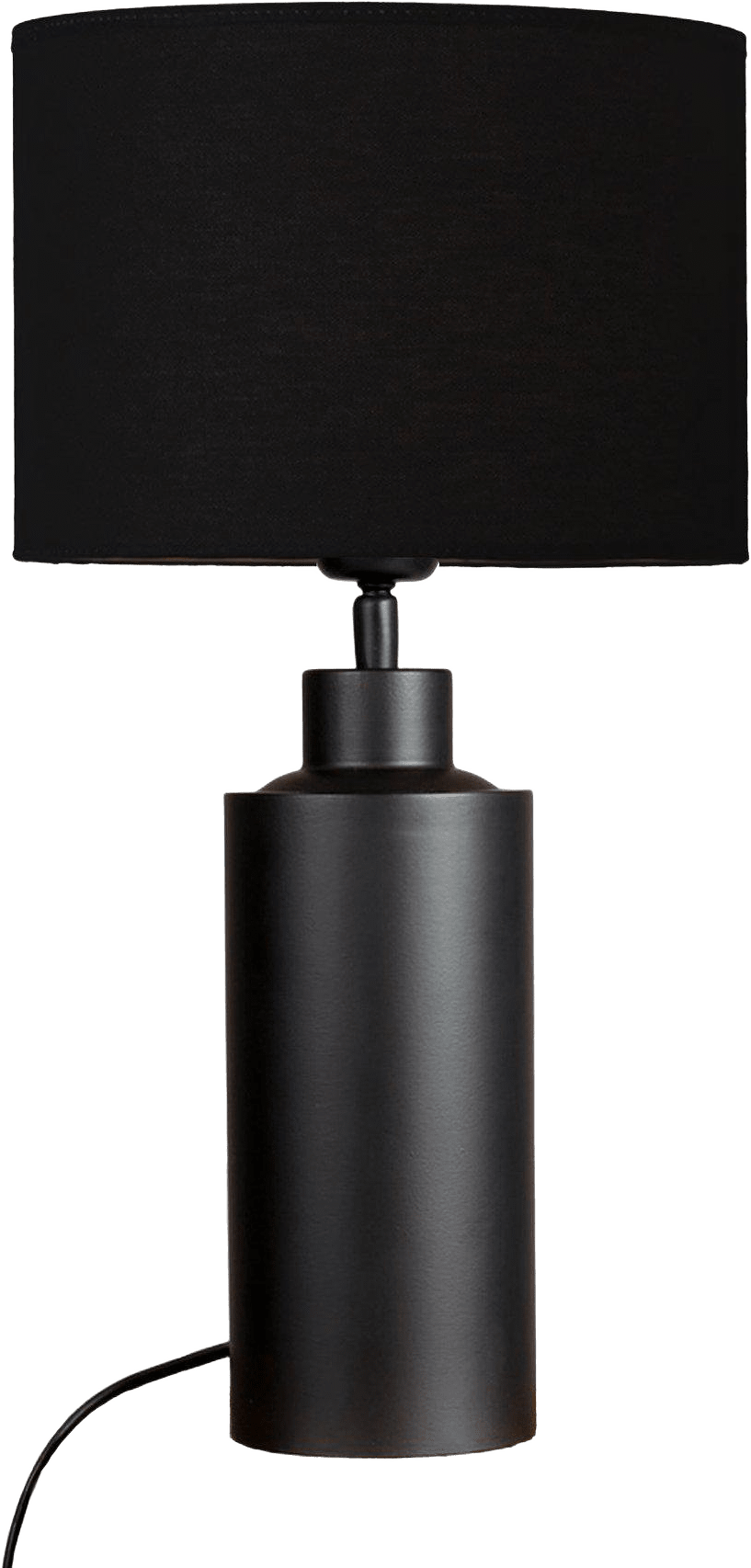 Solo lampfot med en cylinderformad vit tygskärm. Skärmens är 25cm i diameter och 25cm hög. Lampfotens höjd är 32cm och den totala höjden inklusive skärm blir 55cm. Svart plastsladd 170cm med strömbrytare. E27 sockel. Ledad lamphållare. E27 sockel. Max 40W. IP 20. Ljuskälla köpes separat.