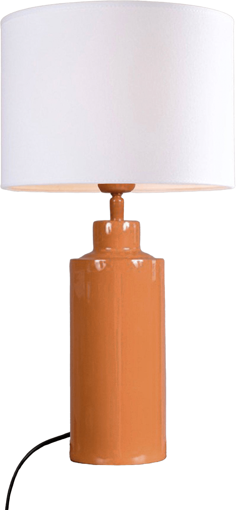 Solo lampfot med en cylinderformad vit tygskärm. Skärmens är 25cm i diameter och 25cm hög. Lampfotens höjd är 32cm och den totala höjden inklusive skärm blir 55cm. Svart plastsladd 170cm med strömbrytare. E27 sockel. Ledad lamphållare. E27 sockel. Max 40W. IP 20. Ljuskälla köpes separat.