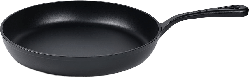 Tillsammans med matfett får pannan en naturlig non-stickyta som gör att maten släpper utan att bränna fast.