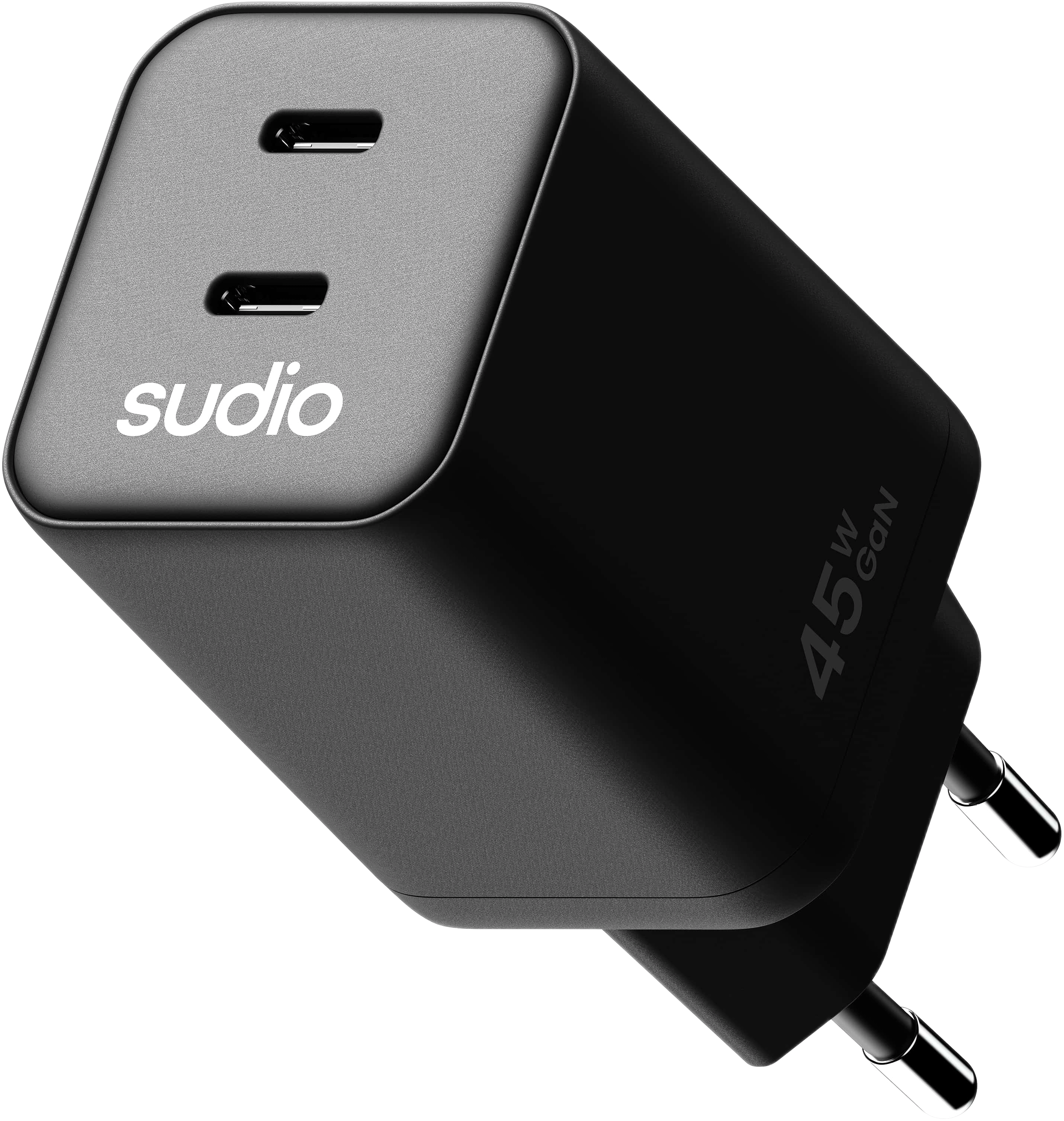 Håll dina enheter fulladdade var du än är med Sudio Sonic 45W USB-C-laddare. Den ultrasnabba laddningen ser till att din surfplatta, telefon och dina hörlurar alltid är laddade och redo för vad som än väntar. Och för extra stil – gör setet komplett genom att para ihop den med en Sudio-laddningskabel.