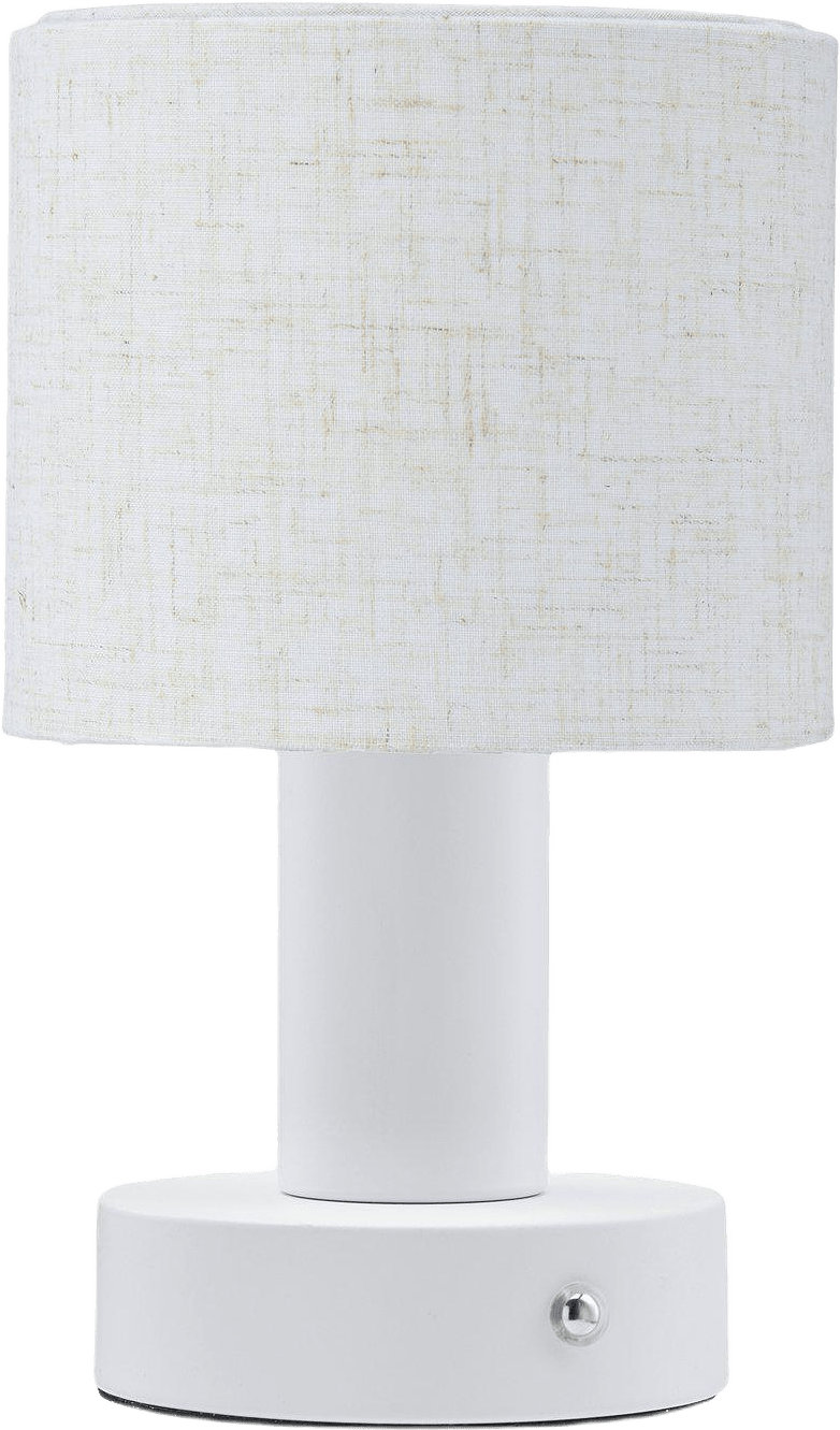 Laddningsbar bordslampa med tre förinställda färgtemperaturer 2700-4000-6500K. Stommen är gjord i lackerad metall. Lampskärmen är i linne. Lampan drivs av ett litiumjon batteri som är uppladdningsbart via USB C uttag. Laddkabeln (1m) ingår. Ljuskällan är inte utbytbar. Ljusflödet varieras 20-40 lumen. Det tar ca 6 timmar för lampan att laddas upp från noll batterinivå. Vid svagast ljusnivå kan lampan vara tänd upptill 8 timmar. Tänd eller släck lampan genom att hålla i ON/OFF knappen i 3 sekunder. Färgtemperaturer ställs in med snabbt tryck på samma knapp. Laddningscykler, 400 gånger. Dimension, Φ13x24cm.