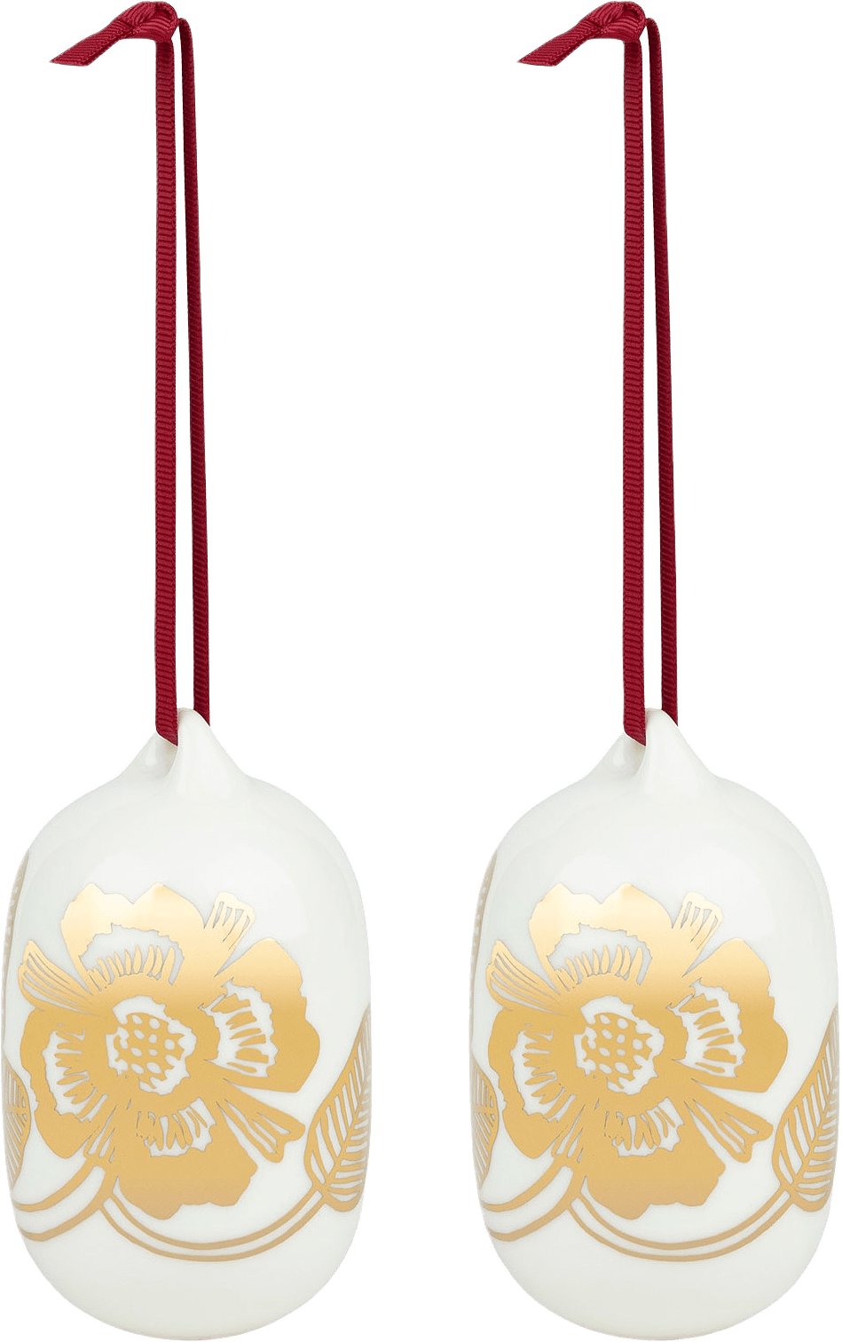 This collectible ornament features the golden metallic pigment Tiara pattern. The ornament features the Marimekko stamp with the year of production on the bottom.