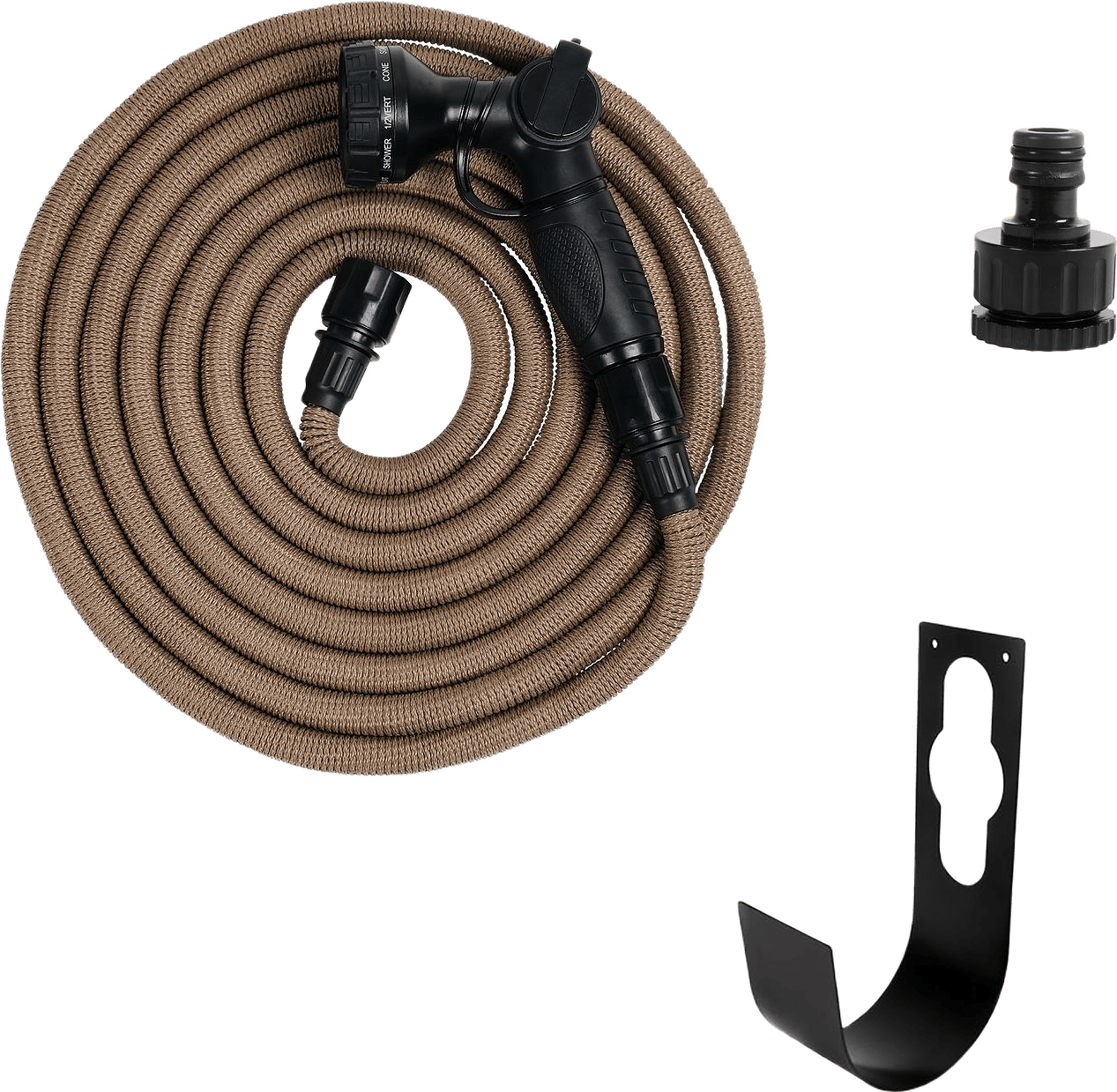 Vattenslang Deluxe 25m, strålpistol med 10 sprayprogram, slanghängare, praktisk påse i sammet.