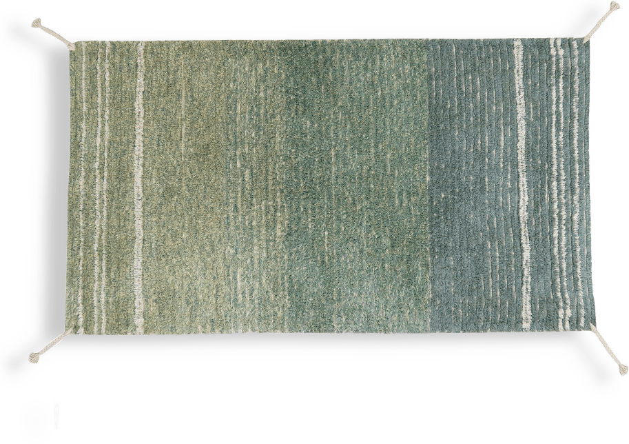 Twin-mattan, som leker med försiktigt skiftande färgpaletter genom hela mattan, visar upp ena sidan i Tooffee-jordfärger och den motsatta sidan i mer neutrala, naturliga toner. På båda sidor är designen avslutad med horisontella ränder i en kontrasterande färg, och de är dekorerade med handgjorda flätor i en naturlig färg i varje hörn. Size: 120x160