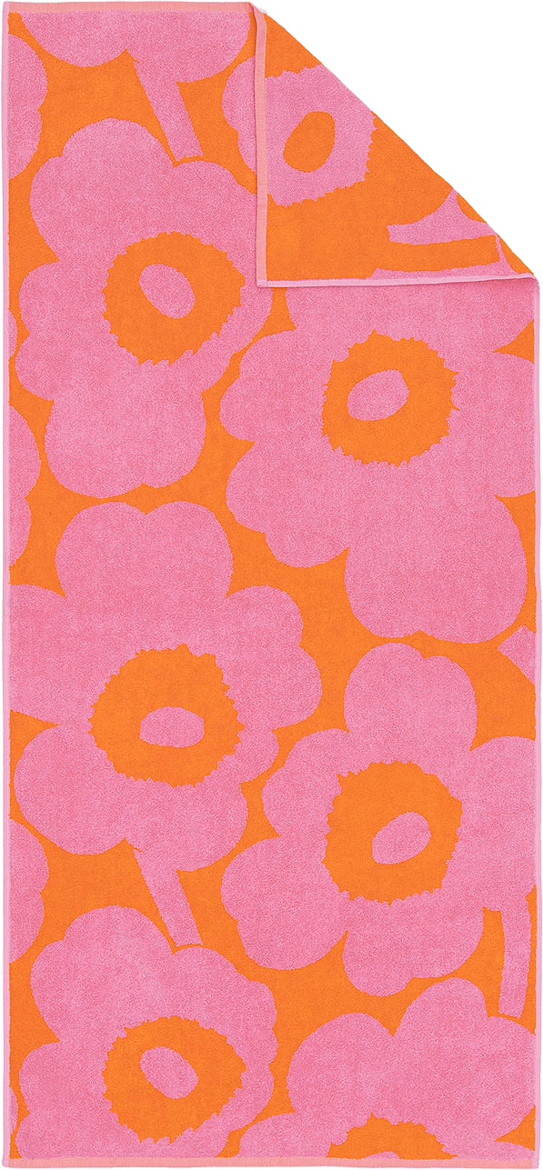 The towel is made of cotton terry, which contains 65% organic cotton and 35% recycled cotton. The recycled fibers originate from a closed loop production, where textile waste generated in the manufacturing of Marimekko’s collections is used as raw material for new Marimekko products.