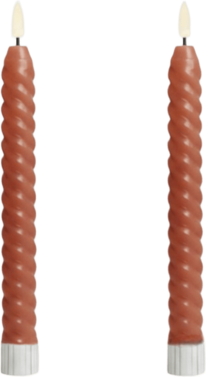 Vega twisted LED taper candles är exklusiva batteridrivna ljus som skapar realistisk och mysig inomhusbelysning.