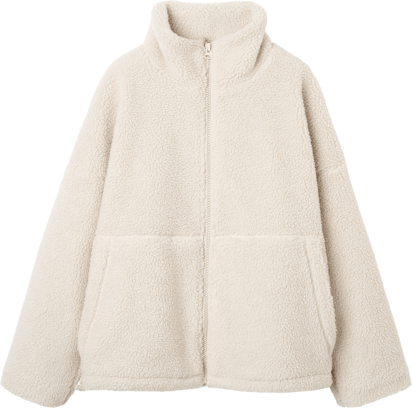 Bred och kort, generös i storlek. Jag är lång, ärmarna kunde varit några centimeter längre men funkar. Gosig jacka i skön kvalitet.