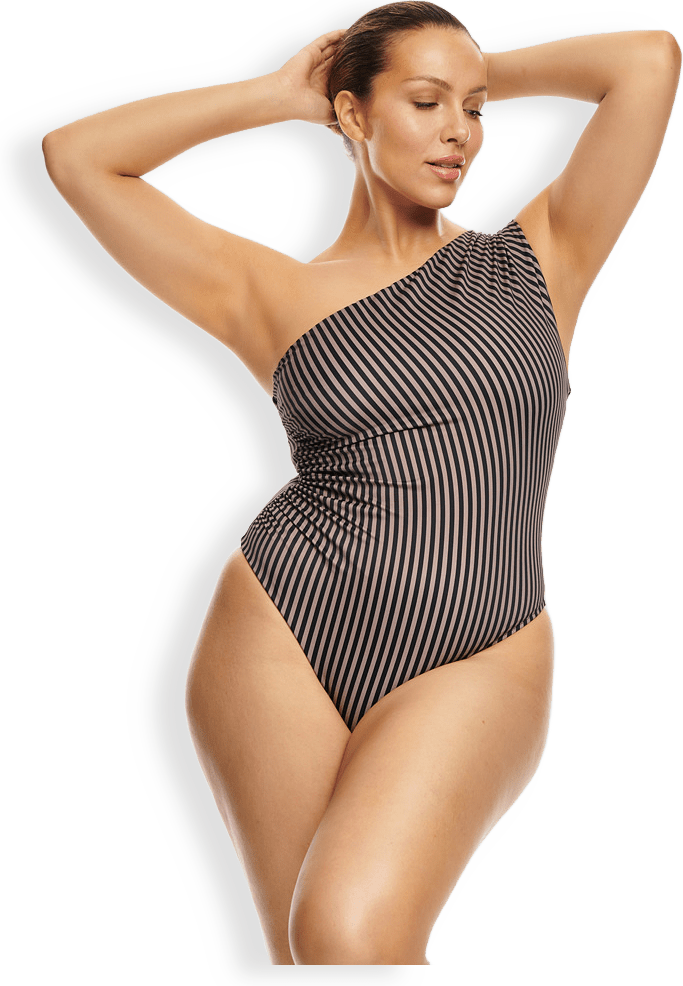 Den enaxlade designen ger en sofistikerad look men också fullt stöd för bysten, oavsett vart dina äventyr tar dig. Draperingen i sidan ger dig smickrande siluett. Passar en liten till stor byst. Gjord i det exklusiva tyget ECONYL tillverkad i Italien.78% återvunnen polyamid, 22% elastan. Snabbtorkande, klorresistent och med UPF50.