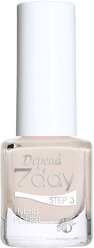 När du applicerar Depend 7day BASE, POLISH och TOP gör du alltid alla 10 naglarna i en följd. 1. Rengör naglarna med Depend 7day CLEANSER. Vänta 30 sek så att ytan är helt torr. 2. Applicera 7day Protecting BASE på alla naglarna. Börja på lillfinger (från höger eller vänster). 3. Därefter kan du direkt applicera det första lagret av 7day Hybrid POLISH. Vänta för säkerhets skull 30 sekunder innan lager 2 av Hybrid POLISH appliceras. Vänta även här 30 sekunder extra innan du applicerar 7day Hybrid TOP. 4. Du avslutar med att applicera Hybrid TOP i två lager. Vänta 3 min innan du applicerar sista lagret av Hybrid TOP. Efter 5 min är 7day-behandlingen torr så att du kan vidröra lackytan. Hela behandlingen tar 15-20 min beroende på hur van du är vid att lacka.