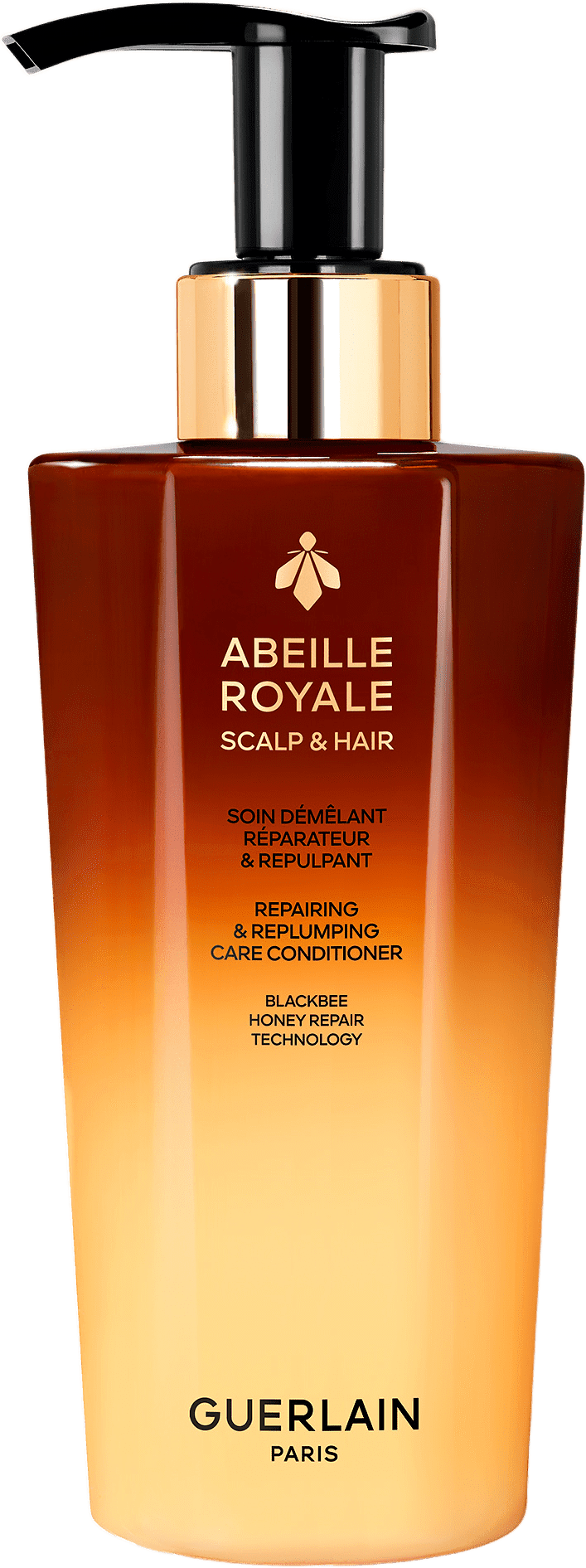 Repairing & Replumping Care Conditioner kombinerar de förnyande egenskaperna hos 4 exklusiva honungsvarianter som valts ut från Guerlains forskning för en dubbelverkan på hårbotten och håret. Efter första användningen är hårbotten återfuktad utan en fet effekt, håret är glänsande och hårfibrerna är fylligare och starkare. Dess fräscha, mjölkiga konsistens, utvecklad i enlighet med Guerlains formuleringsteknik, består av 95% naturliga ingredienser¹.