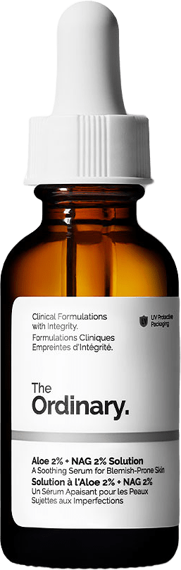 Aloe 2% + NAG 2% Solution är ett lättviktigt lugnande serum formulerat för fläckbenägen hud. Det minskar uppkomsten av post-akne-märken genom att inkludera ingredienser som riktar in sig på utseendet och känslan av både ojämn hudton och textur, samtidigt som hjälper också till att minska uppkomsten av porer och stärker hudbarriären