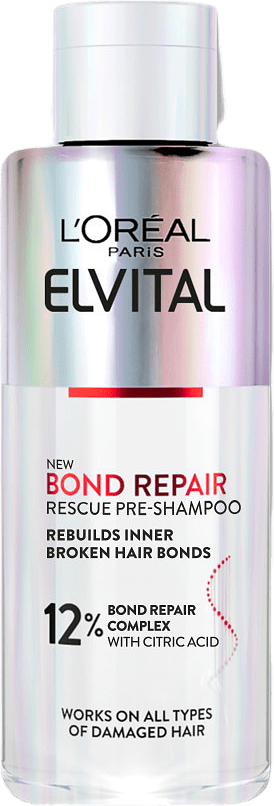 Elvital Bond Repair Rescue Pre-shampoo är ett förschampo för alla typer av skadat hår. Den här hemmabehandlingskuren återuppbygger bindningar i hårets struktur och reparerar hårstrået från fjällskikt till cortex*. Förschampot har den mest kraftfulla reparerande formulan i Bond Repair-serien. Den har även högst koncentration av aktiva ingredienser och skall användas som första steg i din hemmabehandlingskur. Ditt hårstrå är uppbyggt av miljontals bindningar som ger det struktur och styrka. När vi belastar håret genom borstning, blekning,