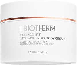En rik, intensivt återfuktande body lotion som ger upp till 100 timmars återfuktning .* Utformad för att stärka och strama upp huden på 5 olika områden på kroppen. Den mjukgör och ger näring åt huden för ett synbart friskare och mer strålande utseende. När vi åldras förlorar huden spänst och fukt. Collagen Fit Body Cream är speciellt framtagen för att motverka dessa tecken. Berikad med Biotech Plankton™, kollagenpeptidfraktioner, Biotech Ceramide och rosaskimrande pärlor, hjälper den till att tona, släta ut och ge huden lyster. Biotech Plankton™: Rik på 35 näringsämnen, denna Biotherm-exklusiva ingrediens bidrar till att få din hud att se yngre, starkare och friskare ut. Kollagenpeptidfraktioner: Två kollagenbyggstenar: tripeptid och tetrapeptid. Biotech Ceramide: Hudidentiskt ceramid-3 är den viktigaste ceramiden i hudbarriären och bidrar till en mer återfuktad hud. *Intrumentellt test Stramar upp huden på 5 olika kroppsdelar: • -28 % slapphet på armarna** • -26 % slapphet på midjan** • +34 % förbättrat utseende på höfterna** • +30 % förbättrat utseende på låren** • +28 % förbättrat utseende på rumpan** **Självutvärderingstest på 120 kvinnor, efter 8 veckor.