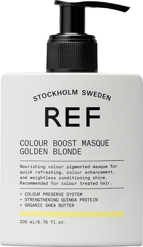 Aqua [Water], Propylene glycol, Cetyl alcohol, Dicetyldimonium chloride, Stearamidopropyl dimethylamine, Behentrimonium chloride, Cetearyl alcohol, Hydroxyethylcellulose, Polyquaternium-10, Lactic acid, Citric acid, Parfum [Fragrance], Phenoxyethanol, Cetrimonium chloride, Imidazolidinyl urea, Synthetic fluorphlogopite, Titanium dioxide, Hexyl cinnamal, Aloe barbadensis leaf juice, Argania spinosa kernel oil, Butyrospermum parkii (Shea butter) oil, Persea gratissima (Avocado) oil, Basic blue 99, Butylene glycol, Quaternium-95, Helianthus annuus (Sunflower) seed extract, Hydrolyzed quinoa, Propanediol, Basic red 76, Tin oxideREF Colour Boost Masque Platinum Blonde