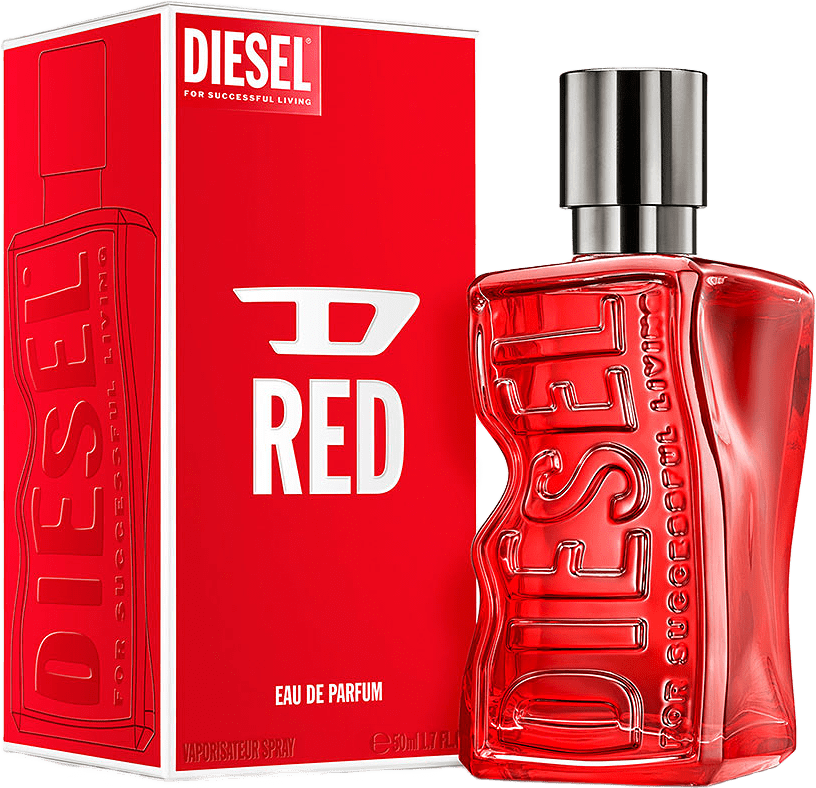 Diesel bryter mot den traditionella doftdesignen och återuppfinner flaskan med en unik twist på sin ikoniska ""Diesel For Successful Living""-logotyp. Flaskan, som inspirerats av den emblematiska D-logotypen, inbjuder dig att sätta din prägel på världen med passion. Korklocket, som påminner om nitarna på Dieseljeans, ger designen en tuff touch. D RED utmanar konventionerna genom att avslöja en oväntad och distinkt röd sida, som förkroppsligar doftens magnetiska intensitet och originalitet. Denna röda sida omfamnar ofullkomligheter och förvandlar dem till en källa till kraft. Den ikoniska röda färgen skapar en hypnotisk lek med perceptioner när glaset vibrerar i lysande reflektioner och inbjuder dig att sätta ditt unika röda avtryck.