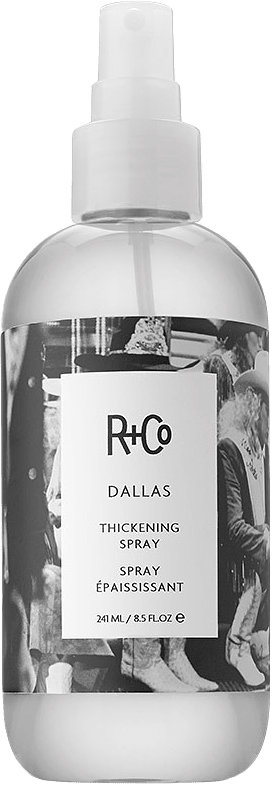 Alcohol Denat., Aqua/Water/Eau, Acrylates/Hydroxyesters Acrylates Copolymer, PEG-40 Hydrogenated Castor Oil, Polysorbate 20, PEG-12 Dimethicone, Aminomethyl Propanol, Panthenol, Hydrolyzed Vegetable Protein PG-Propyl Silanetriol, Actinidia Chinensis (Kiwi) Fruit Extract, Aloe Barbadensis (Aloe Vera) Leaf Extract, Hedychium Coronarium (Ginger) Root Extract, Mangifera Indica (Mango) Fruit Extract, Passiflora Incarnata (Passion Flower) Extract, Helianthus Annuus (Sunflower) Seed Extract, Amodimethicone, Butylene Glycol, C11-15 Pareth-7, Laureth-9, Trideceth-12, Sodium Lactate, PPG-12-PEG-65 Lanolin Oil, Polyquaternium-59, Polyquaternium-11, Mel/Honey/Miel, PPG-26-Buteth-26, EDTA, Aspartic Acid, Sodium PCA, PCA, Glycine, Arginine, Alanine, Isoleucine, Proline, Threonine, Histidine, Phenylalanine, Serine, Valine, Glycerin, Apigenin, Oleanolic Acid, Biotinoyl Tripeptide-1, Phenoxyethanol, Potassium Sorbate, Polyaminopropyl Biguanide, Chlorphenesin, Parfum/Fragrance, Limonene, CitralR+Co DALLAS Thickening Spray