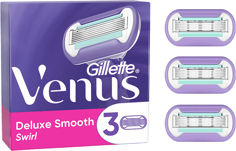 Venus rakblad är utformade för kvinnliga former. Venus Deluxe Smooth Swirl rakhyvel för kvinnor ger len hud som varar. Rakbladen har 5 blad för en supernära rakning, och Swirl rakhyveln har en inbyggd flexiball som anpassar sig efter kroppens konturer. Rakbladen rakar närmare huden, för lenhet som varar. Bladens vattenaktiverade fuktremsa hjälper till att skydda mot skärsår och skråmor.