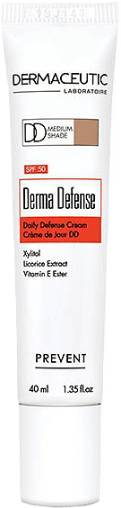 Aqua (Water), Ethylhexyl Methoxycinnamate, C12-15 Alkyl Benzoate, Butyl Methoxydibenzoylmethane, Methylene Bis-Benzotriazolyl Tetramethylbutylphenol [Nano], Ethylhexyl Salicylate, Cetearyl Alcohol, Propanediol Dicaprylate, Titanium Dioxide (Ci 77891), Diisopropyl Adipate, Ethylhexyl Triazone, Glyceryl Stearate, Peg-100 Stearate, Steareth-21, Pentylene Glycol, Iron Oxides (Ci 77492), Xylitol, Xylitylglucoside, Anhydroxylitol, Glycyrrhiza Glabra (Licorice) Root Extract, Tocopheryl Acetate, Decyl Glucoside, Glyceryl Caprylate, Xanthan Gum, Acrylates/C10-30 Alkyl Acrylate Crosspolymer, Hydrogenated Lecithin, Propylene Glycol, O-Cymen-5-Ol, Bht, Chlorphenesin, Disodium Edta, Sodium Hydroxide, Iron Oxides (Ci 77491), Iron Oxides (Ci 77499).Dermaceutic Derma Defense Medium